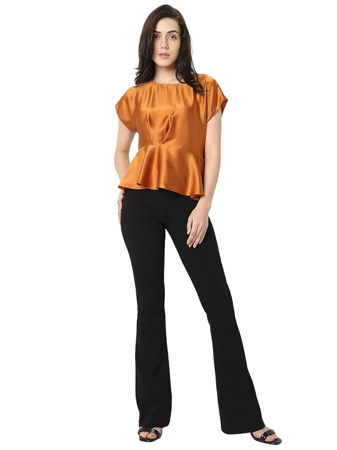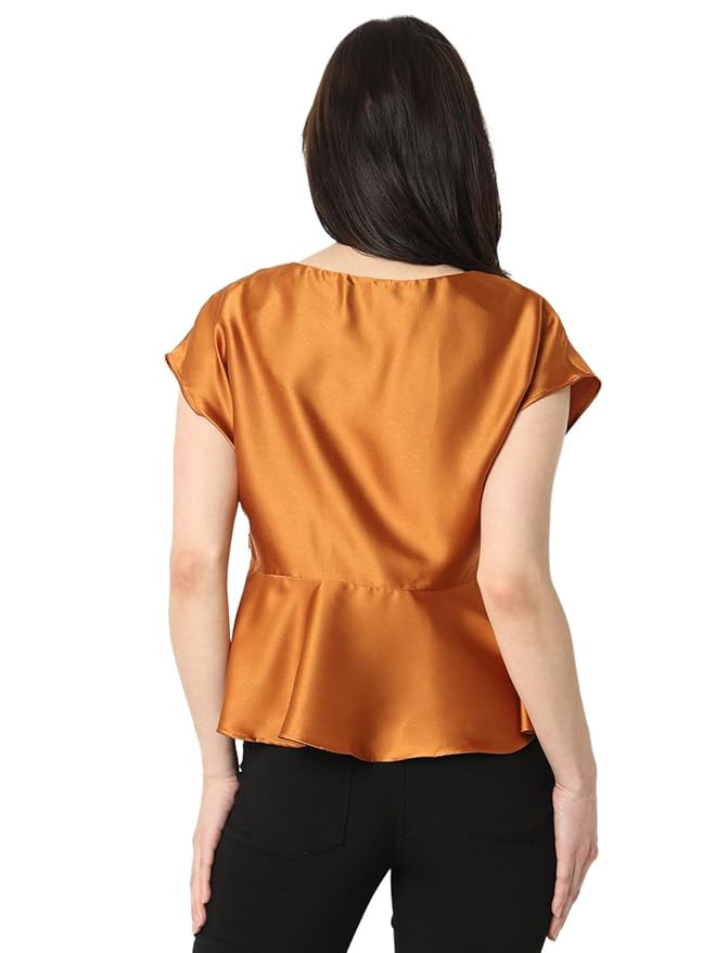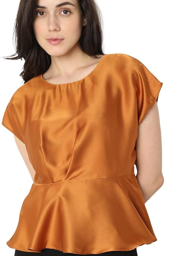 Fabric Composition, Wash Care: 100% Polyester,Machine Wash Fit Type: Regular Fit Neck Type: Round Neck Pattern Type: Solid Sleeve Type: Cap Sleeves
