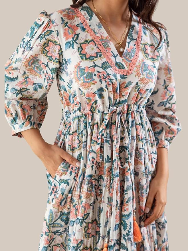 Soft Rayon Blend Fabric: Crafted from a premium soft rayon blend, this one-piece dress for women features a stylish floral print, ideal as a beach dress for women.
