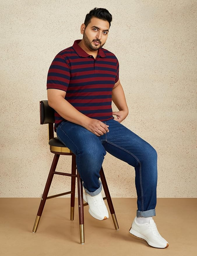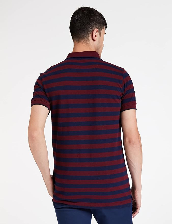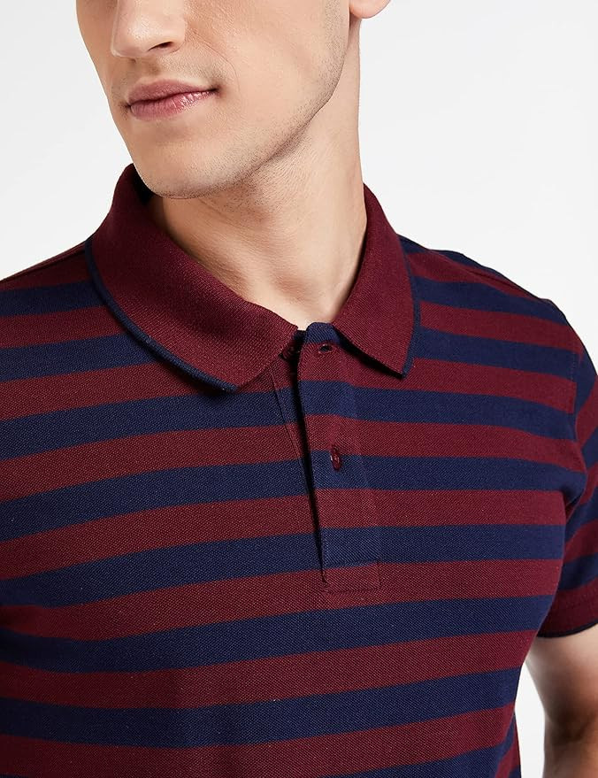 PRODUCT DETAILS: Regular fit, featuring a striped pattern with ribbed knit collar and cuff, 2 -button placket, half sleeves and side slits for movement.