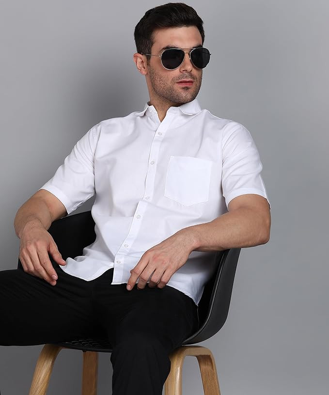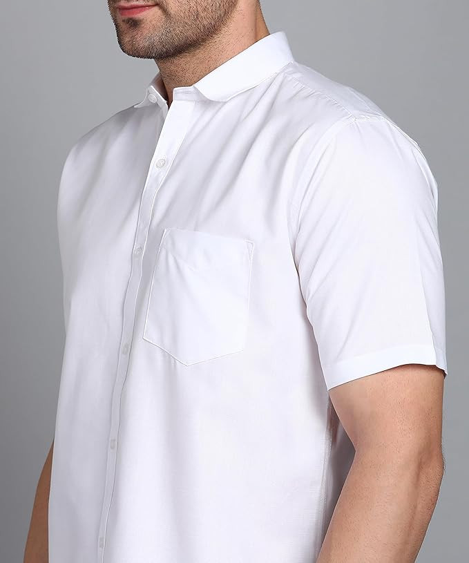 bout this item Premium Cotton Blend Fabric: Soft, breathable, and comfortable for all-day wear. Slim Fit Design: Offers a modern, sleek silhouette that flatters the body. Button Down Spread Collar: Timeless style that’s perfect for formal and business occasions. | Half Sleeve & Curved Hemline: Ideal for warm weather, providing a polished yet relaxed look. Chest Pocket: Functional single pocket for holding small essentials.