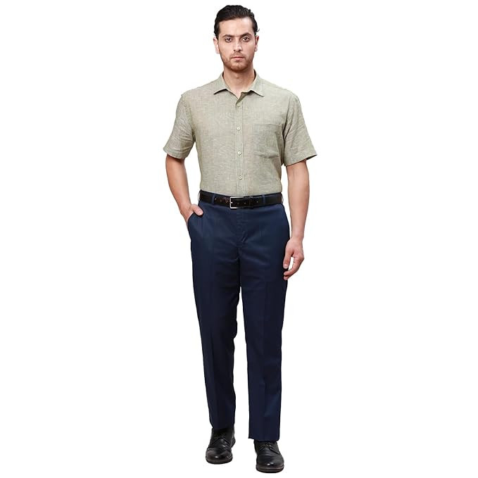 Fabric : 85% Polyester, 14% Viscose, 1% Lycra Fit : Regular Fit Pattern : Self Design