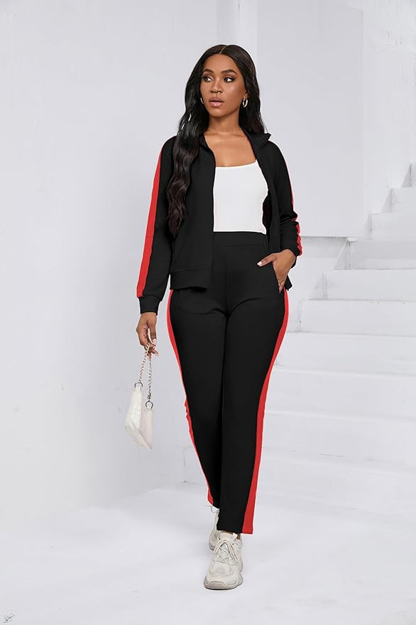 Features: Slim Fit.long Sleeve Zipper Jacket With Two Pockets,pants Also Have Pockets.bodycon Sweatpants,lightweight,easy To Pull On.the Contrasting Color Design On The Side Shows The Perfect Figure.