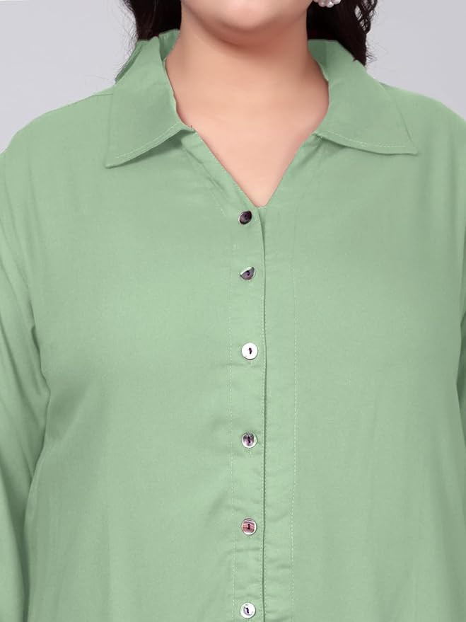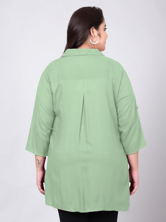 Women's Plus Size Solid Rayon Longline Casual Shirts