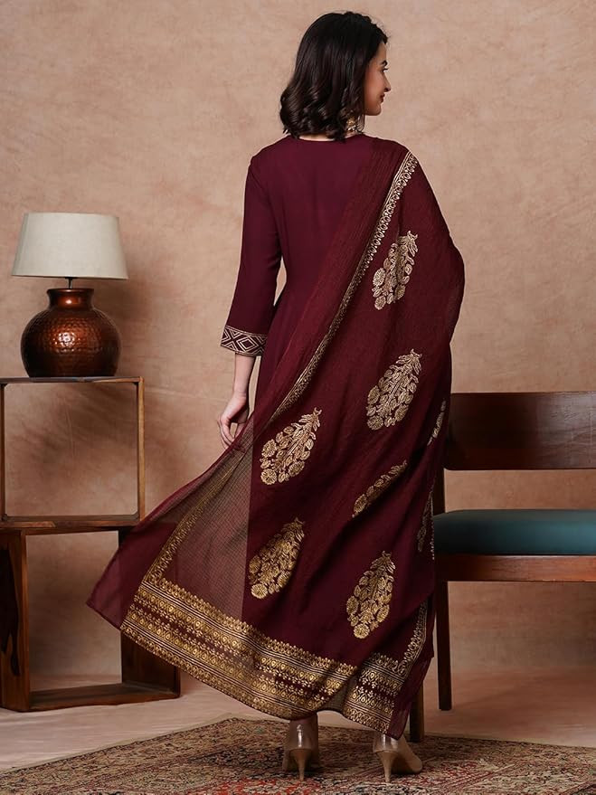 This set includes: 1 Kurta and 1 Pant with Dupatta || Work :- Solid and Dupatta Printed || Neck Style:- Round Neck Colour Declaration : There might be slight variation in the actual color of the product due to different screen resolutions. Ocassion: Traditional wear, Casual Wear, party wear,