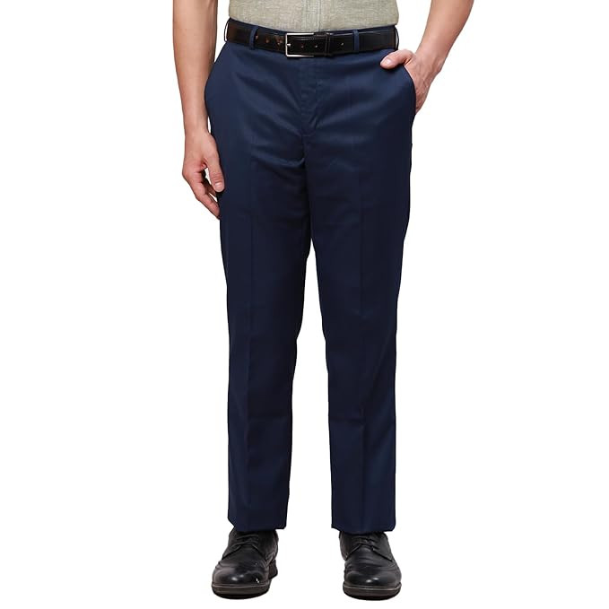 Men's Smart Fit Mid Rise Structure Pattern Poly Viscose Blend Pleatless Formal Trouser