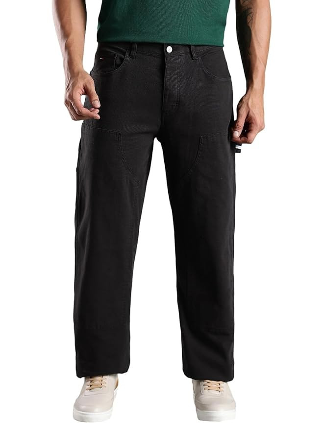 Fabric Relaxed Fit Solid Mid Rise Trouser For Men's