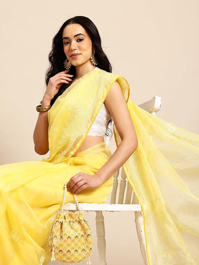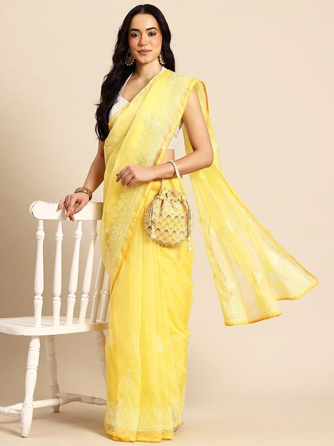 MATERIAL: Premium Silk Blend fabric with delicate white embroidered details throughout the saree, offering elegant draping and comfort DESIGN: Pastel colour saree featuring intricate traditional embroidery patterns along borders and body OCCASION WEAR: Perfect for formal events, festivals, weddings, and special occasions requiring sophisticated ethnic attire