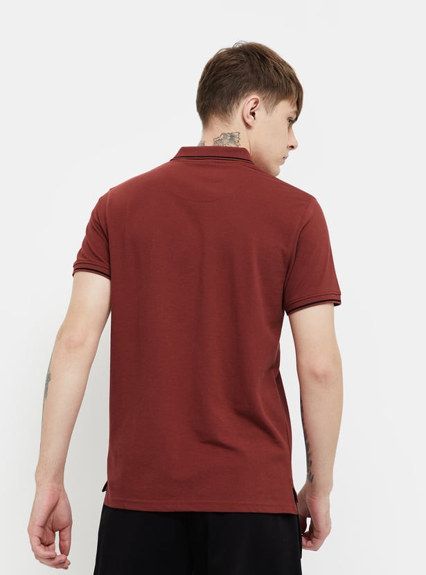 Level up your sportswear game with this T-shirt. Designed with a classic polo collar, half sleeves, and a two-button placket, it provides the perfect blend of comfort and style, making it ideal for both on and off the field. The contrast tipping adds to the look.