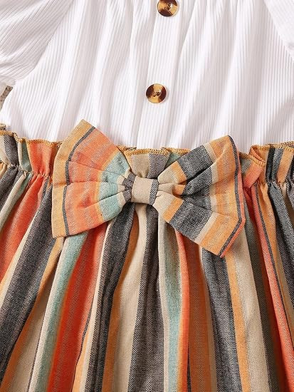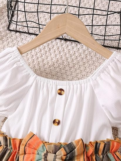 The dress with Puff Sleeve with Front Bow gives pretty looks and also good in party wear as well as other functions. Style Name : Puff Sleeve Boat Neck Dress Pattern: StripDigital Print, Details: Puff Sleeve , Sleeve Length: Short for 2-8 year's baby's