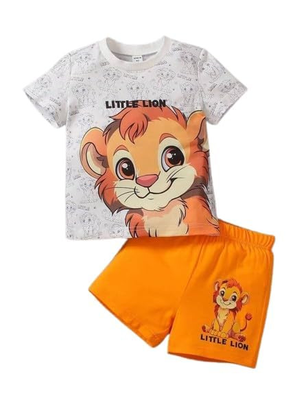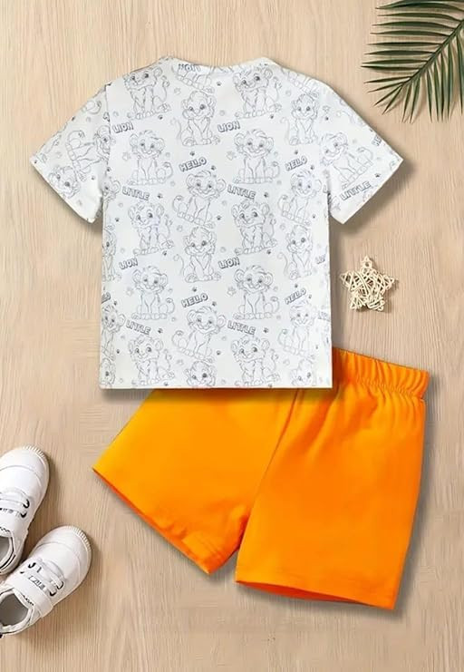 Kid's Dress for Boys | Round Printed Neck Half Sleeve T-shirt and Pant Clothing Set for Baby Boys