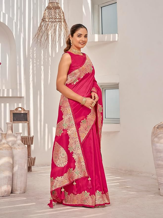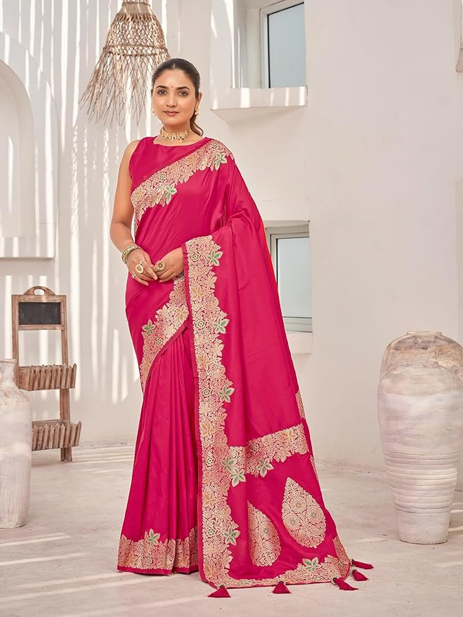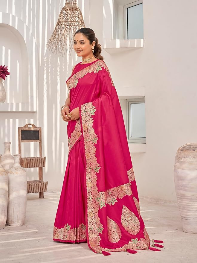 Saree comes with unstitched blouse piece,which is attached with end of the saree only. Buyer have to cut blouse part from the saree. Stiching service will not be available. There might be color variation due to screen resolution and digital photography