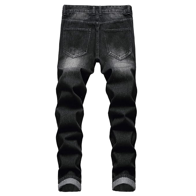 Men's Ripped Jeans, Distressed Destroyed Slim Fit Straight Leg Pants