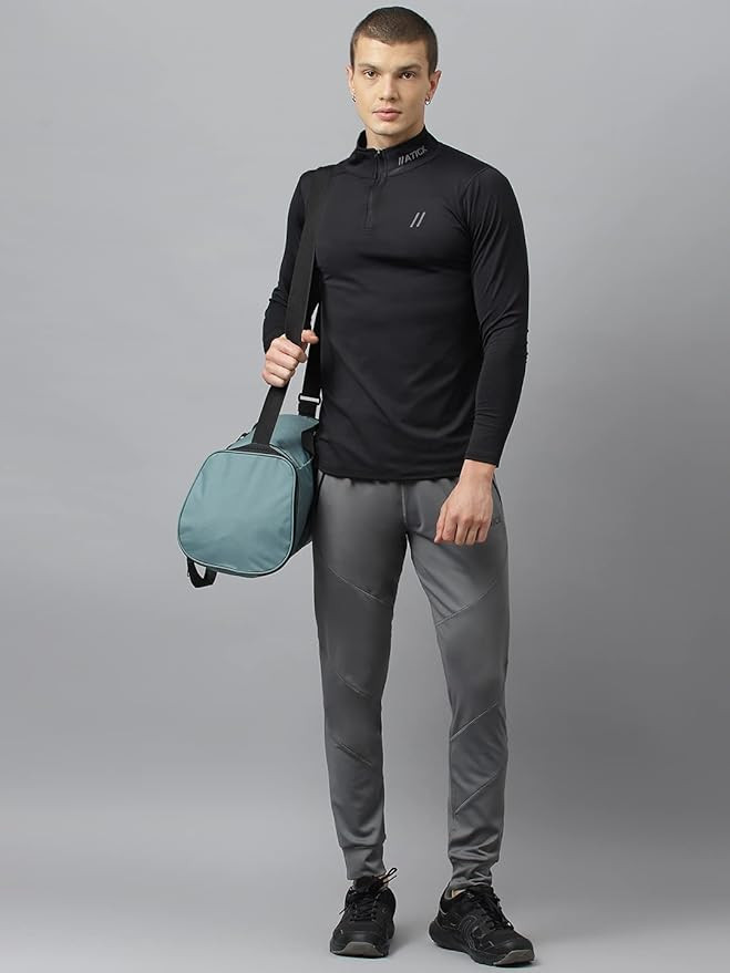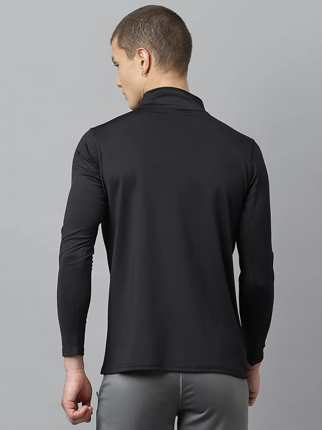 Men’s Slim Fit Polyester Full Sleeve T Shirt - Compression Tight Top Base Layer with Zip for Gym, Cycling, Running