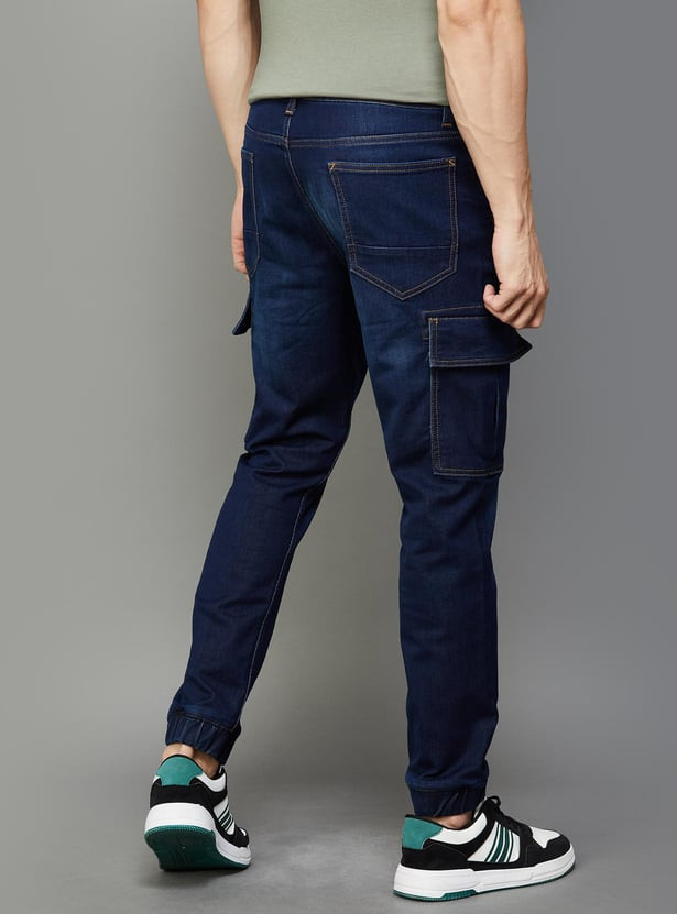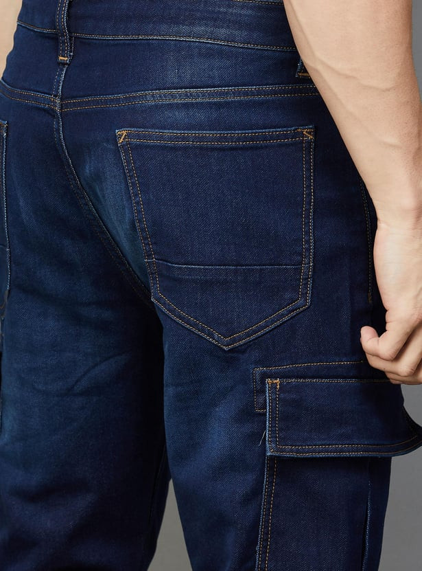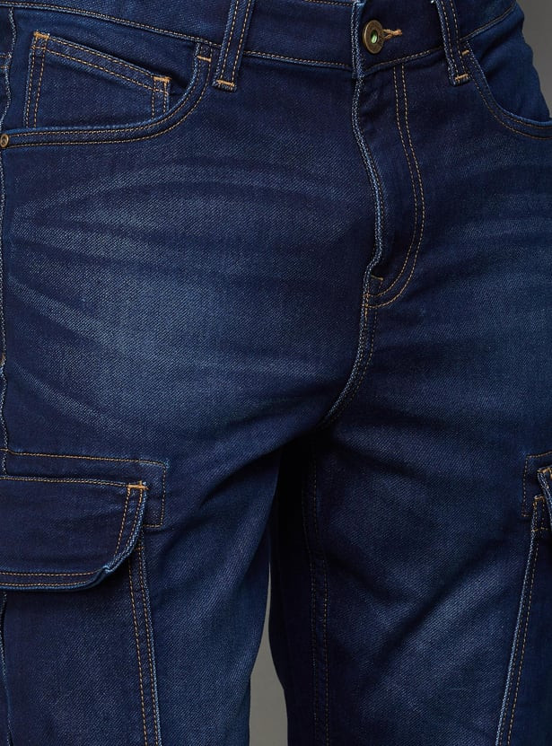 WIZARD Men Stonewashed Regular Fit Cargo Jeans