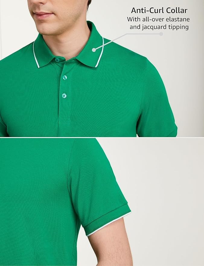 Anti curl collar made with all over elastane along with jacquard tipping Superior craftsmanship for that clean finish