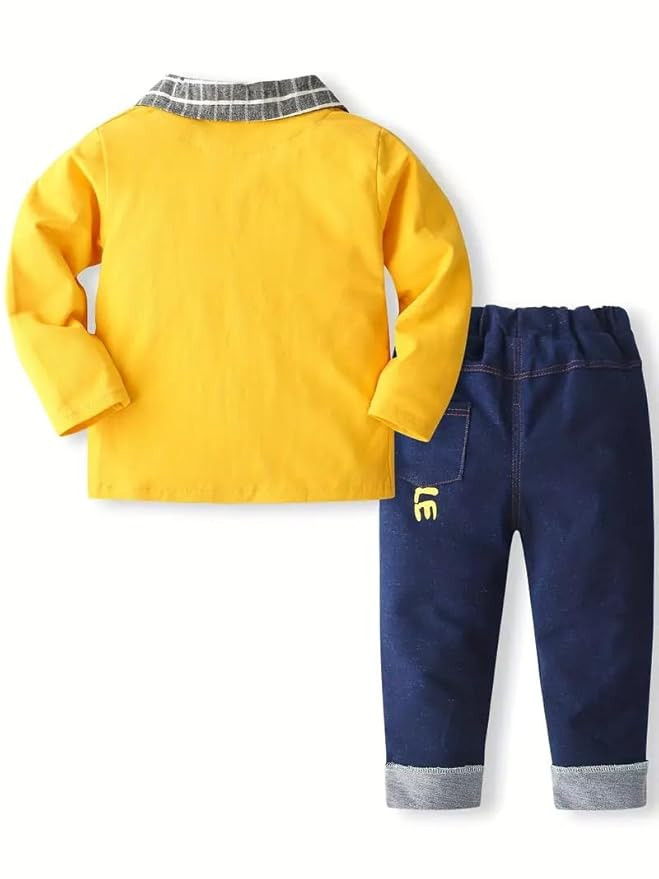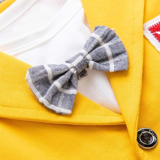 Gone are the days when playing dress-up was restricted only to little girls. This Bold N Elegant stripe coat with white t-shirt, bowtie and matching trouser is mesmerizing, its comfy, stylish yet affordable. What's more, this color matches the personality of our little boys. Checkout one of our best outfit that you can get for your little boy. Wearing these, he is sure to look no less than a rockstar. Parents these days love styling their little kids, be it a birthday party or an everyday casual occasion, we love seeing our tiny tots at their best. Must buy this stripe print smart casual cum party wear suit set for your little man on upcoming occasion! This stylish complete party clothing set for little boys promise a ravishing and fashionable look. It is a complete combination of a t-shirt with trousers along with smart coat and bow, to give handsome and gentleman like look to your young hero. This hotselling outfit is a great choice to have in your child’s closet for a stunning look. Package inclusions: 1 Full Sleeve Jacket/Coat, 1 Full Sleeve Shirt, 1 Pant/Trouser, Style: Single breasted Suit, Collar: Notched Lapel, Print: Stripes on Coat & Trouser. Be it a wedding party, a birthday party or any festival celebration with family; this outfit is ideal for all. 5-7 Year