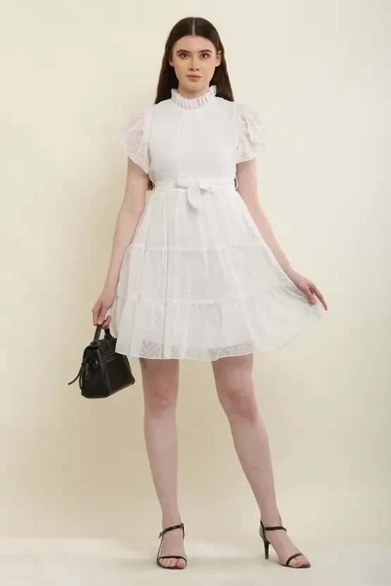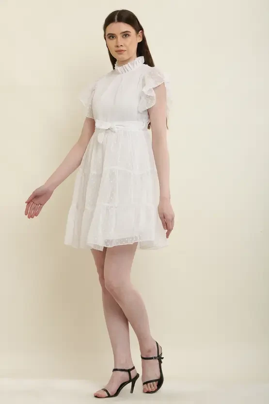 Women Skater White Above Knee/Mid Thigh Length Dress
