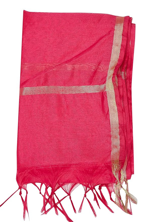 The dupatta has golden borders on both sides and the pallu too Beautifull tassels on both ends of the dupatta Available in many colurs