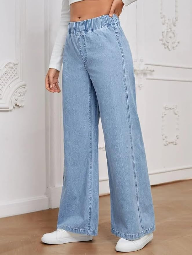 with casual and dressy tops, suitable for both everyday wear and special occasions FLATTERING FIT: Wide-leg silhouette creates a lengthening effect while the high-waist design accentuates the natural waistline MATERIAL: Premium denim fabric provides durability and stretch while maintaining shape throughout the day