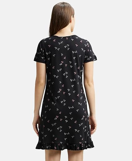 Women's Modal Cotton Ruffled Hem Styled Half Sleeve Printed Sleep Dress Mini Nightdress