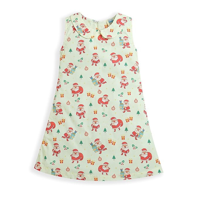 ZIP ZAP ZOOP Light Green & Red All Over Christmas Print Elegant Christmas Sleeveless Dress