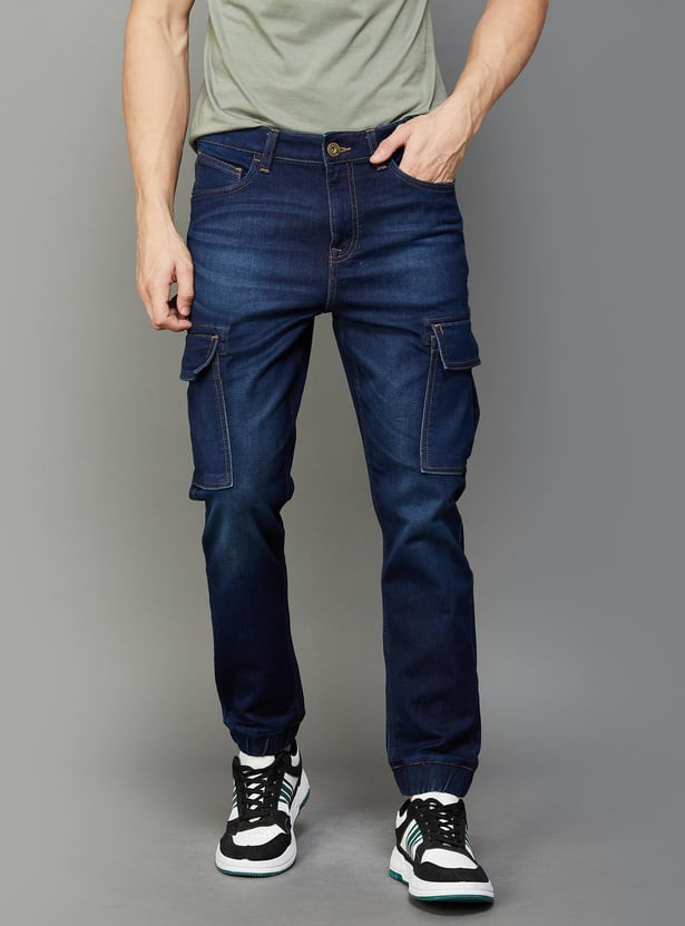 Men's Stonewashed Regular Fit Cargo Jeans